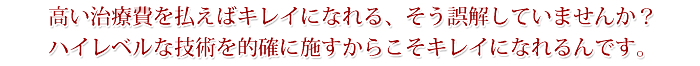 もちろん、高度で卓越した技術を要し、永続的効果をお約束する外科的手術につきましても、他院とは比較にならないほどリーズナブルな価格で提供しています。