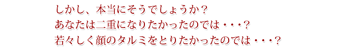 たとえば、老化による弛みについて考えてみると、何故頬の部位が下垂しているかといえば、頬を支えている筋肉や靭帯が老化による変化で弛緩しているからです。ならばおのずと若返り手術はこれらの筋肉や靭帯をリフトすることになります。この根本を処理しない限りどんな方法も不完全であり、効果も一時的です。処理しなければならない部位を無視して、いわゆるプチ整形で行われている糸で留めるだけ、注入するだけというような原因を放置した手術を行っても一時的に目的が実現するにせよ、やがて元に戻ることになります。もちろん、病気ではないので一時的でもよいという方にはプチ整形を安価な価格で処置いたします。