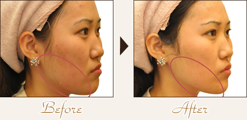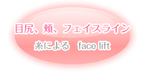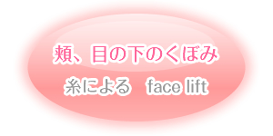 コメカミ部位に1センチ弱の切開を行い、その部位から鼻唇溝上の脂肪(メーラーファット)にチップ付きの糸を通して顔面中部の弛みを引き上げる方法です。コメカミの筋膜にチップを埋め込み固定してるため2~3年後に緩みがでた場合再度糸を締めなおすことができるのが特徴です。