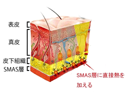 ダブロは、高密度焦点式超音波/HIFU(High Intensity Focused Ultrasound)によって、たるみの根本的な原因であるSMAS層(表在性筋膜)に直接熱エネルギーを加え、筋肉から「たるみ」を改善する新しいタイプのたるみ治療器です。