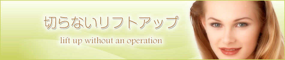 フェザーリフトは、特殊な糸(羽がついた様に作成された糸)を弛みがある皮下に通して引き上げる方法です。糸には溶けない糸(アプトスリフト)と、溶ける糸(ハッピーリフト)があります。最近は溶ける糸を使用する方が一般的です。